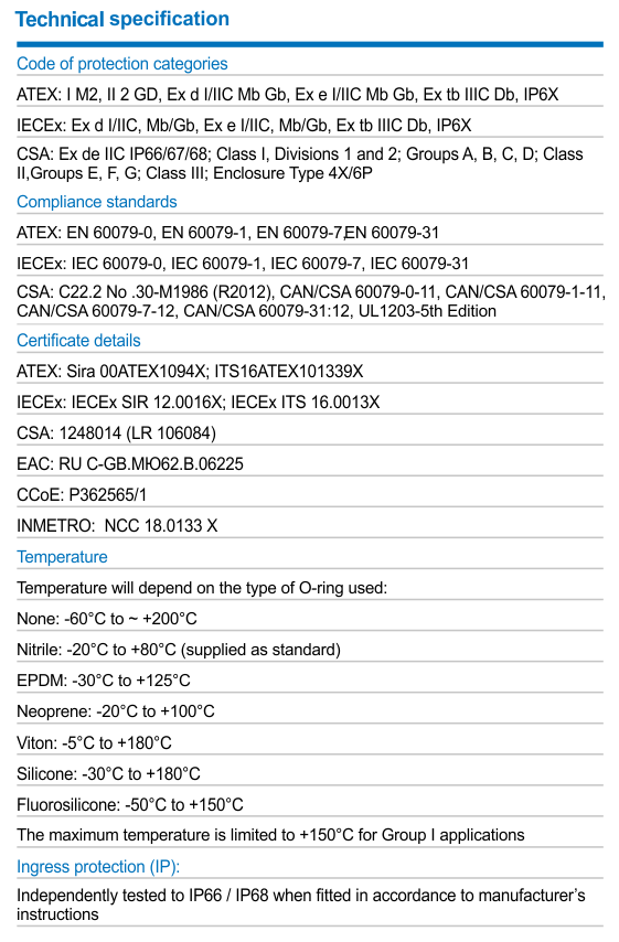 - IP66, IP68, Loại vỏ CSA (NEMA) 4X, 6P