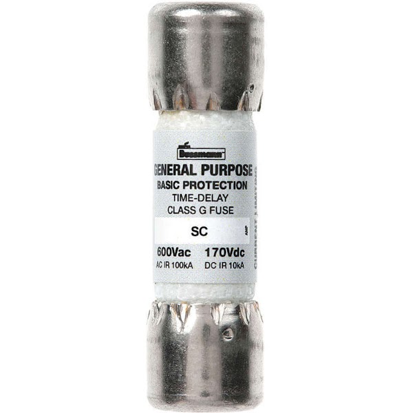 Eaton Bussmann series SC fuse, Current-limiting time-delay fuse, Rejection style, 30 A, Class G, Non-indicating, Ferrule end x ferrule end, 12 sec at 200%, 10 kAIC at 300 Vdc|100 kAIC at 480 Vac, Standard, 480 V, 300 Vdc