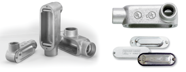 Các thân hộp nối ống dẫn chống cháy nổ bằng gang mềm Form 5 của Eaton's Crouse-Hinds được sử dụng trong các hệ thống ống dẫn để làm điểm nối cho dây dẫn khi được lắp đặt, cung cấp các lỗ mở để thực hiện nối dây và kết nối trên dây dẫn, uốn cong 90 độ trong các đoạn ống dẫn, cung cấp đường vào cho dây dẫn để bảo trì và thay đổi hệ thống trong tương lai.