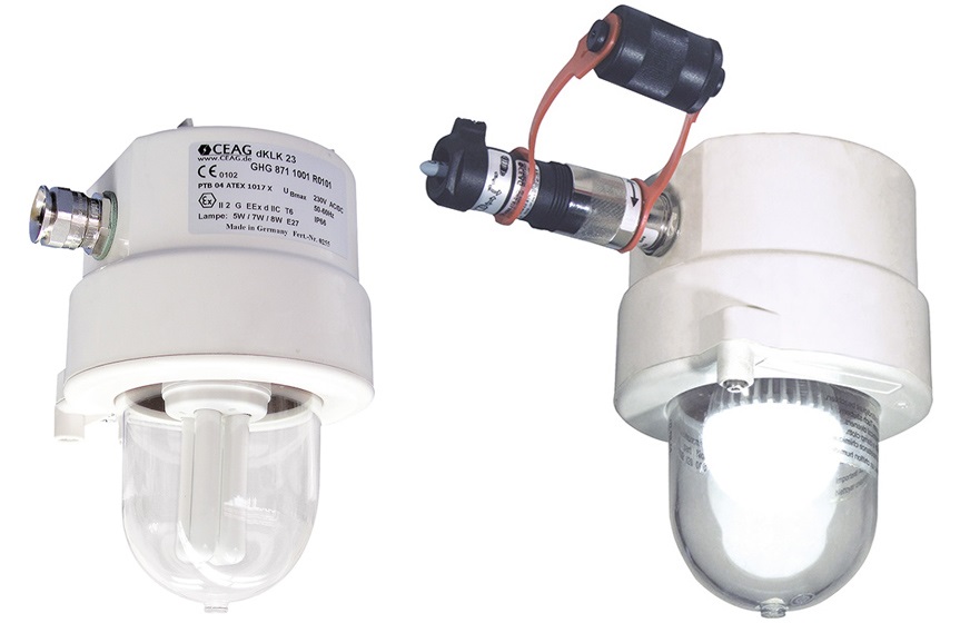 Thiết bị chiếu sáng khẩn cấp CEAG dKLK 23 LED từ Crouse-Hinds của Eaton được thiết kế để gắn trên trần/tường ở các vị trí nguy hiểm Zone 1, 21, 2 và 22. Bộ đèn LED dKLK 23 lý tưởng cho hoạt động không liên tục dưới dạng đèn nhấp nháy nhưng cũng có thể được sử dụng làm đèn nhấp nháy (khi được lắp đặt cùng với mô-đun đèn flash) hoặc đèn tín hiệu (có vỏ bảo vệ màu).