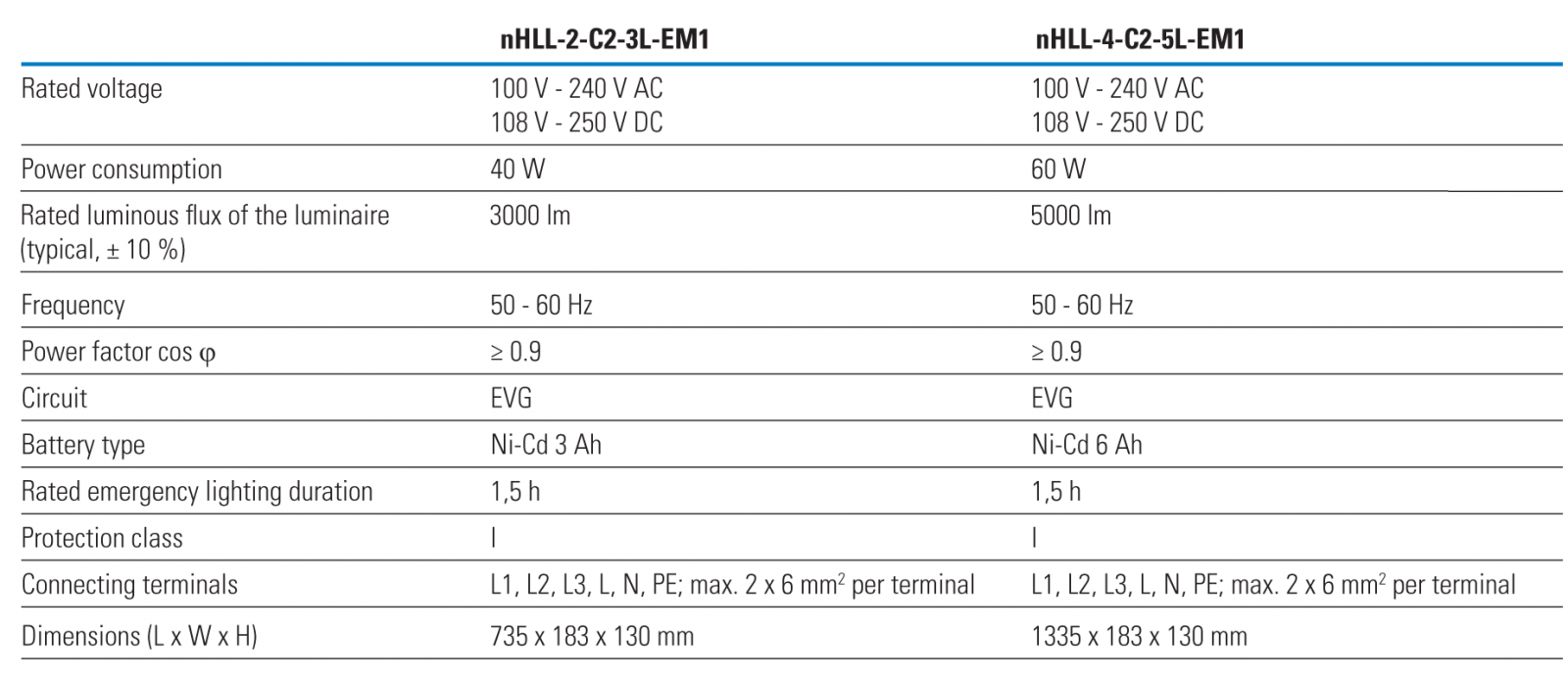 - Môi trường hoạt động: -40 °C (nHLL-EM: -25 °C) lên đến +55 °C.