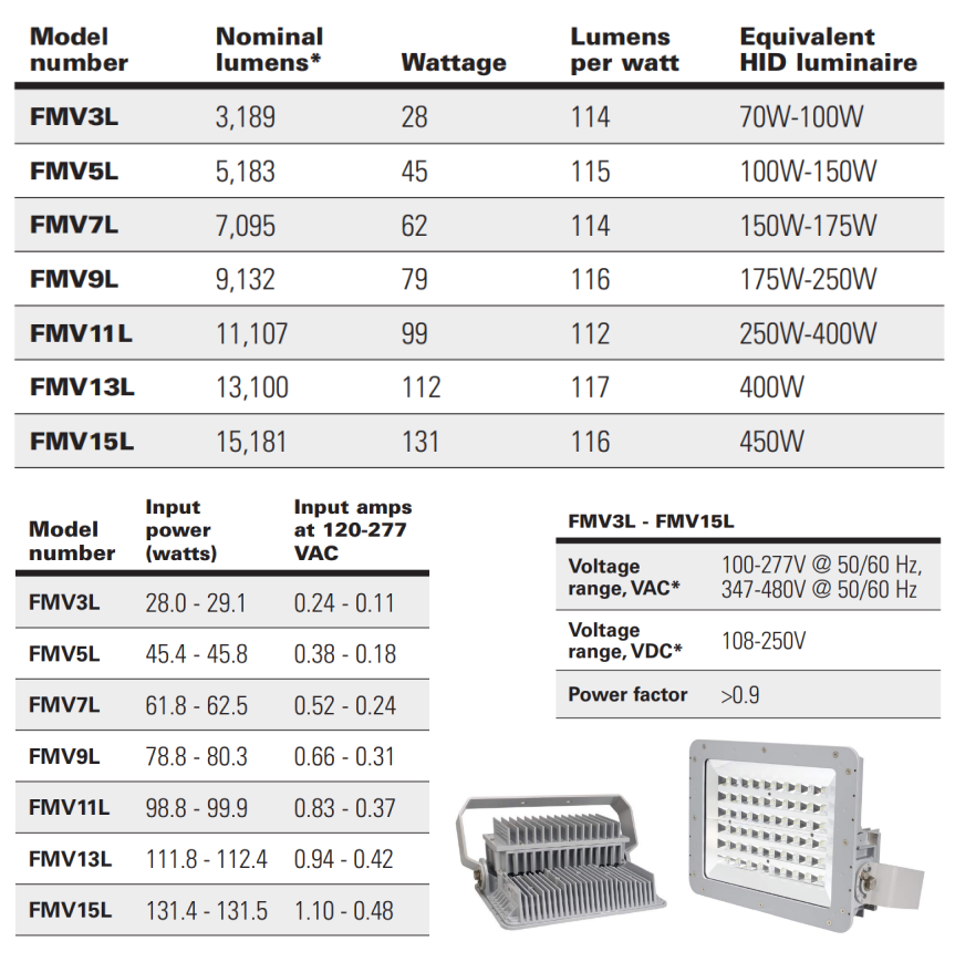 Champ FMV và FMVA LED được chứng nhận toàn cầu để sử dụng ở các khu vực nguy hiểm NEC, CEC và IEC. Cung cấp giải pháp chiếu sáng cho các ứng dụng trên toàn thế giới. Chúng lý tưởng cho chiếu sáng khu vực chung gắn trên tường / cột ngoài trời, nơi có hơi, khí, bụi dễ cháy, sợi hoặc vật bay.