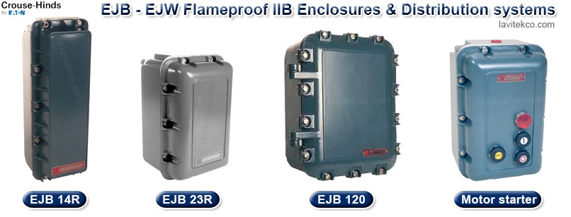 Dòng Crouse-Hinds CEAG EJB và EJW Flameproof IIB các thiết bị phân phối chống cháy nổ được sử dụng trong Zone 1, 2 khu vực nguy hiểm. Thiết kế mô-đun cho phép vỏ EJ kim loại dễ dàng kết hợp thành các hệ thống phân phối lớn, được kết nối thông qua các đầu vào cáp chống cháy.