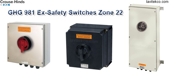 Công tắc an toàn chống cháy nổ CEAG GHG 981 dòng Crouse-Hinds được phê duyệt để sử dụng trong môi trường bụi nổ Zone 22, có mức bảo vệ chống xâm nhập IP66. Với thiết bị khóa móc tích hợp, chúng được sử dụng như một công tắc ngắt tải mang lại sự an toàn cần thiết bảo vệ con người.
