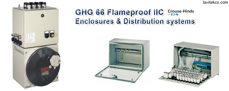 Hệ thống phân phối chống cháy nổ dòng Crouse-Hinds CEAG GHG66 Ex d IIC kết hợp vỏ nhôm chống cháy và hộp đấu nối bằng thép Ex-e với lớp sơn tĩnh điện polyester. GHG 66 đáp ứng các quy định của ngành công nghiệp hóa chất, hóa dầu ngoài khơi ở vùng khí hậu biển nhiệt đới.