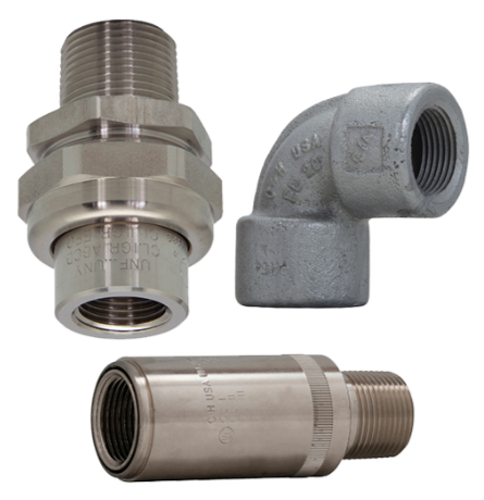 Các khớp nối chống cháy nổ dòng Crouse-Hinds được lắp đặt trong hệ thống ống dẫn cứng (rigid) hoặc IMC để kết nối ống với ống, ống với phụ kiện, hộp nối hoặc vỏ thiết bị. Cũng có sẵn các khớp nối giãn nở, cho phép giãn nở và co lại của ống dẫn, đồng thời bù đắp cho trường hợp ống bị cắt quá ngắn. Sản phẩm có sẵn với nhiều loại vật liệu, bao gồm thép không gỉ, để phù hợp với yêu cầu.