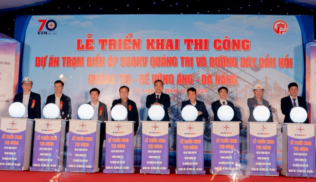 (PetroTimes) - Ngày 20/3/2024, tại huyện Hải Lăng, tỉnh Quảng Trị, Tổng công ty Truyền tải điện Quốc gia (EVNNPT), Ban QLDA các công trình điện miền Trung (CPMB) đã tổ chức triển khai thi công Trạm biến áp 500kV Quảng Trị và đường dây đấu nối Quảng Trị - rẽ Vũng Áng - Đà Nẵng.